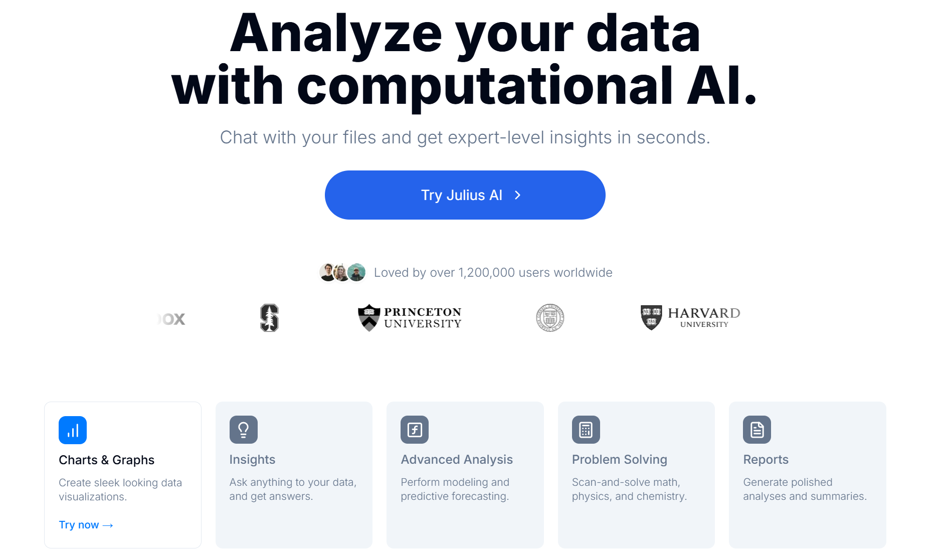 Julius.ai offers an AI-driven graph maker that facilitates the creation of custom bar charts, scatter plots, pie charts, histograms, and line charts. It provides a user-friendly interface for generating professional charts quickly and efficiently